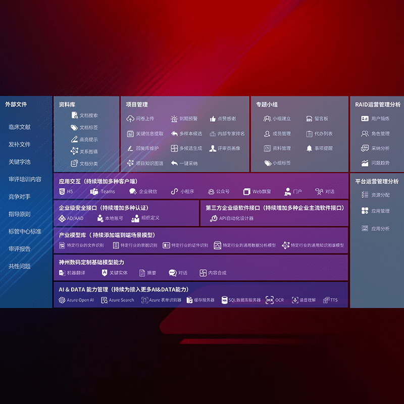 医疗器械产品上市前,,,要熟悉严格与繁复评审标准,,,,整理分析监管机构指导文件中的海量信息。。。。企业急需一个智能化解决方案,,,提升知识管理效率,,,,提高评审通过率,,以提升其市场竞争力。。
